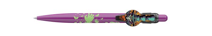 Halloween motívumokkal díszített nyomógombos mechanikával működő golyóstoll.