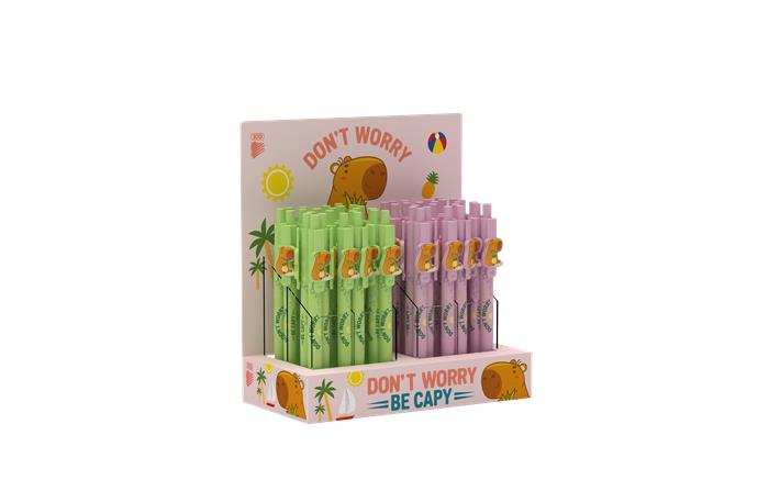 48 db Capibara formájú klipsszel díszített golyóstoll display -nyomógombos-műanyag, rózsaszín és zöld tolltest-cserélhető X-20-as betét-írásszín: kék -írásvonalvastagság: 0,8 mmGyártó/első EU forgalmazó elérhetősége: ICO ZRT2013 Pomáz, ICO út 5.; EUpost@ico.euwww.ico.eu